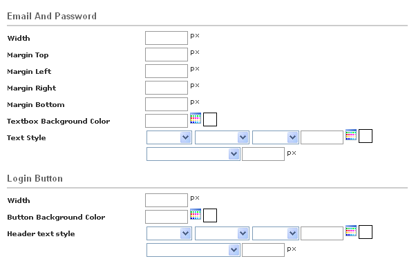 Here you can design the Login Panel, set the width of the Email and Pasword testboxes